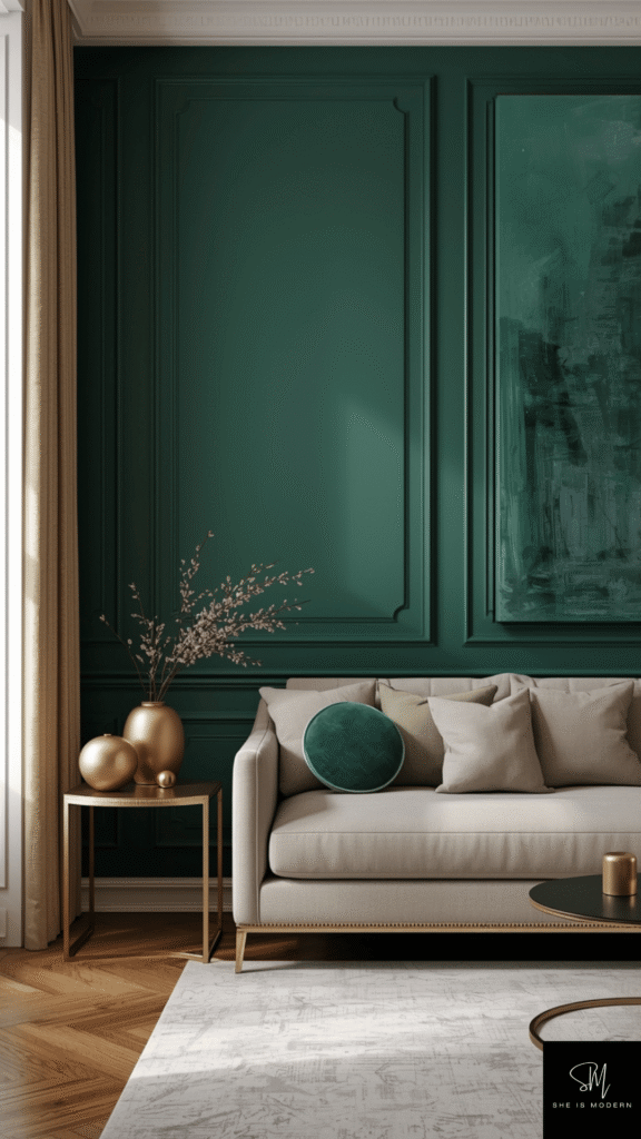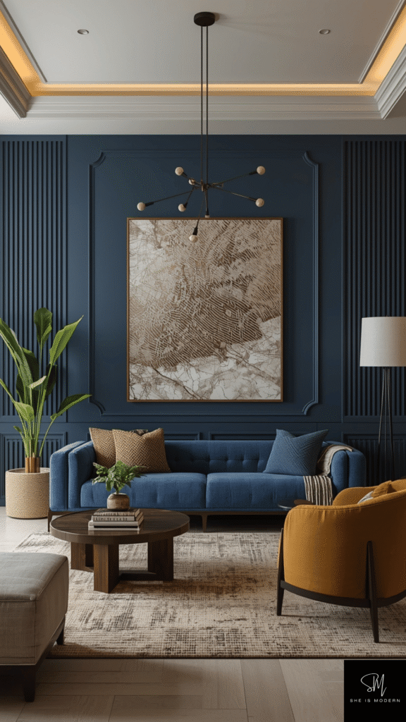 A bold wall sets the tone of the whole room. Neo Deco loves deep shades like emerald green, navy blue, and charcoal. These colors create a rich base that feels calm and strong at the same time. You can use paint, textured wallpaper, or even panels to build depth. Keep other walls lighter so the room does not feel closed.