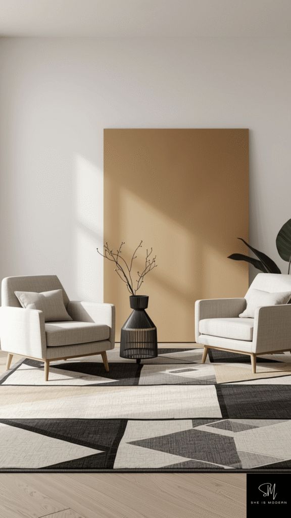 Geometry is a key part of Neo Deco style. Clean lines, sharp angles, and repeating shapes bring structure to your space. You can add this through rugs, cushions, wall art, or even shelving. These patterns give a modern edge while still nodding to classic Art Deco design. Keep the shapes simple so the room stays easy to look at.