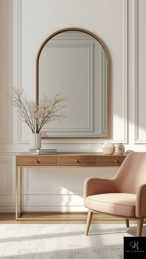 Place mirrors where they can reflect light or a nice view. Above a console table or across from a window works well. Avoid overcrowding the wall. One strong mirror is better than many small ones. It keeps the space clean and elegant.