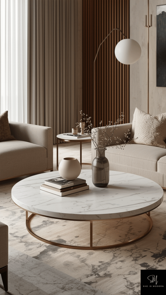 Use marble in small amounts for the best effect. A single table or decor item can stand out without making the space feel heavy. Too much marble can feel cold and overwhelming. Balance it with warm tones like wood or soft fabrics to keep the room inviting.