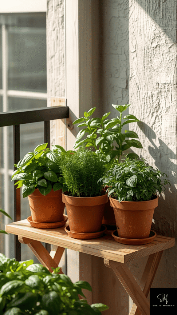 Herbs are easy to grow and don’t need much space. They also smell great and add a natural touch to your balcony. Use matching pots or containers to keep the look clean and organized. Label each plant for a neat and simple style.