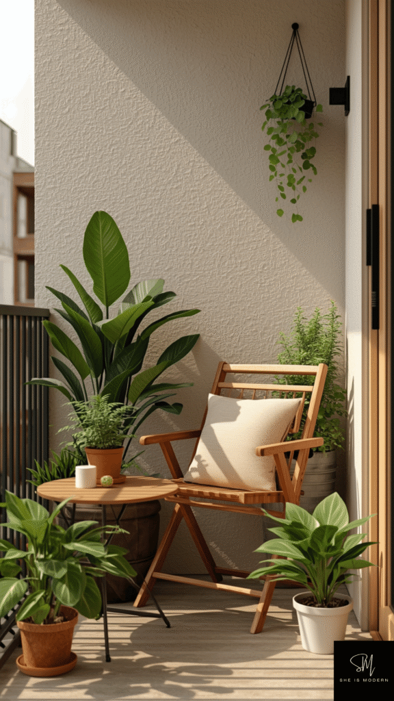 Use smart storage to keep things organized. Choose furniture that has hidden space or can be folded. Place plants along the edges so the center stays open. This keeps the balcony easy to move around while still feeling green and fresh.