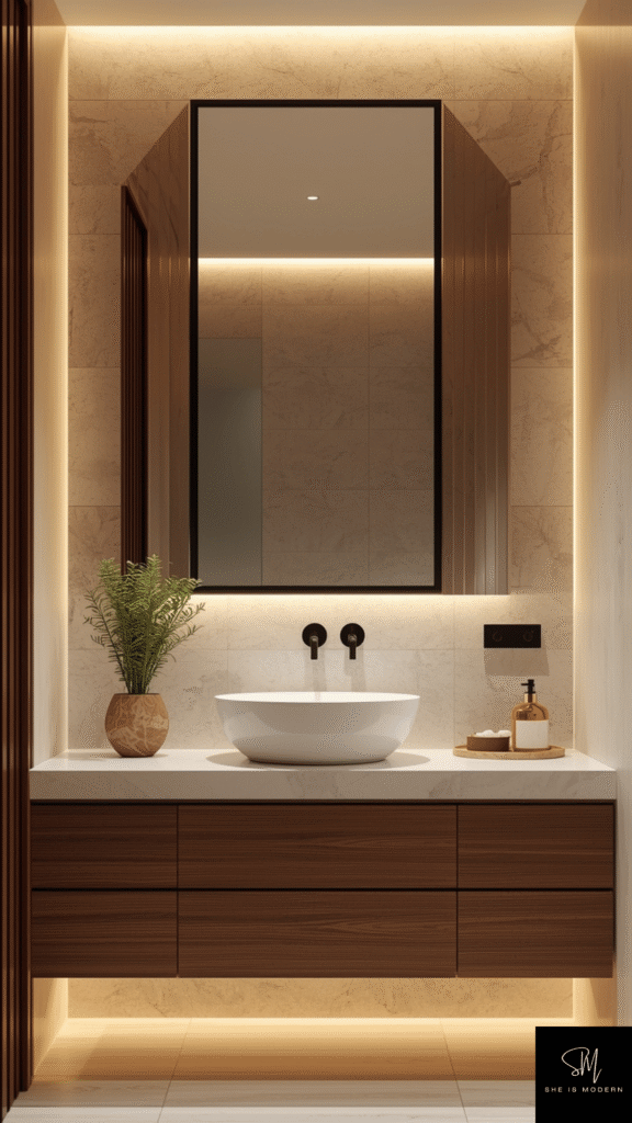 This is a quick upgrade that doesn’t require removing the mirror. It’s affordable, easy, and gives instant results. A framed mirror makes your bathroom feel finished, stylish, and more like a designer space.