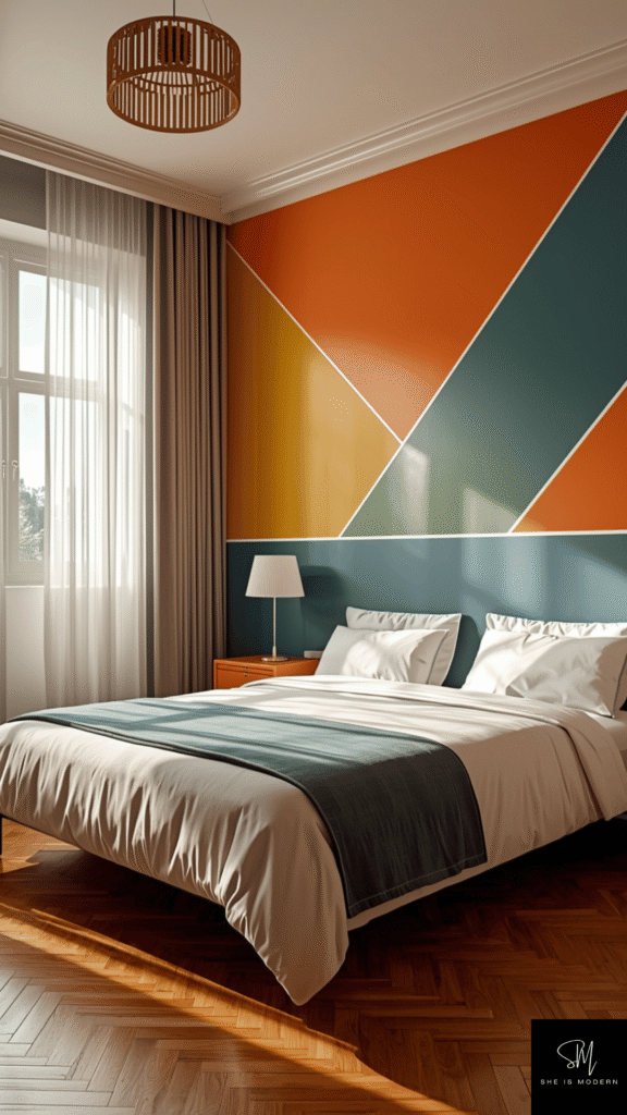 You can mix two or three colors for a strong visual effect. Try pairing warm tones with cool tones for balance. Keep furniture simple so the wall stands out more. Retro style is all about bold choices, so don’t be afraid to experiment. This idea works well even in small bedrooms.
