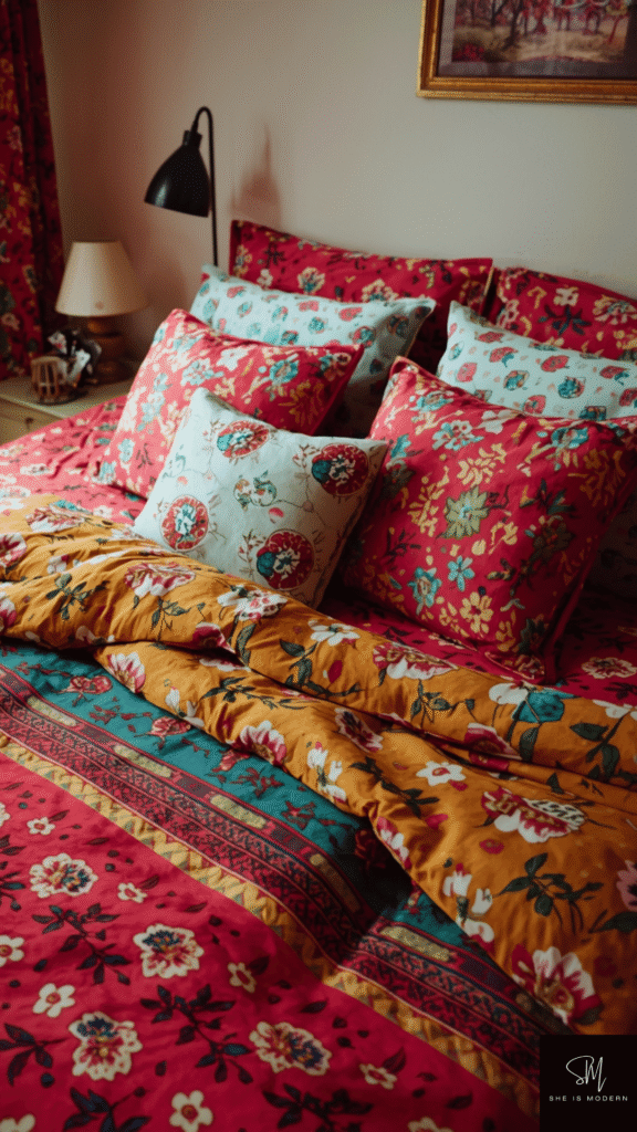2. Vintage Patterned Bedding