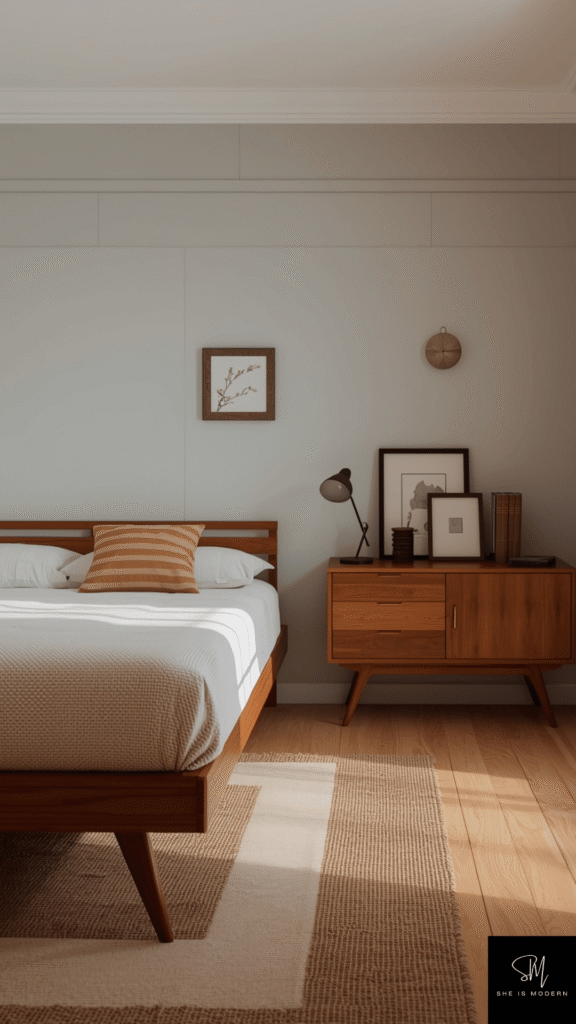 Mid century furniture is simple but stylish. Look for wooden pieces with clean lines and tapered legs. These designs were popular in retro times and still look modern today. A wooden bed frame or nightstand can change the whole feel of your room.