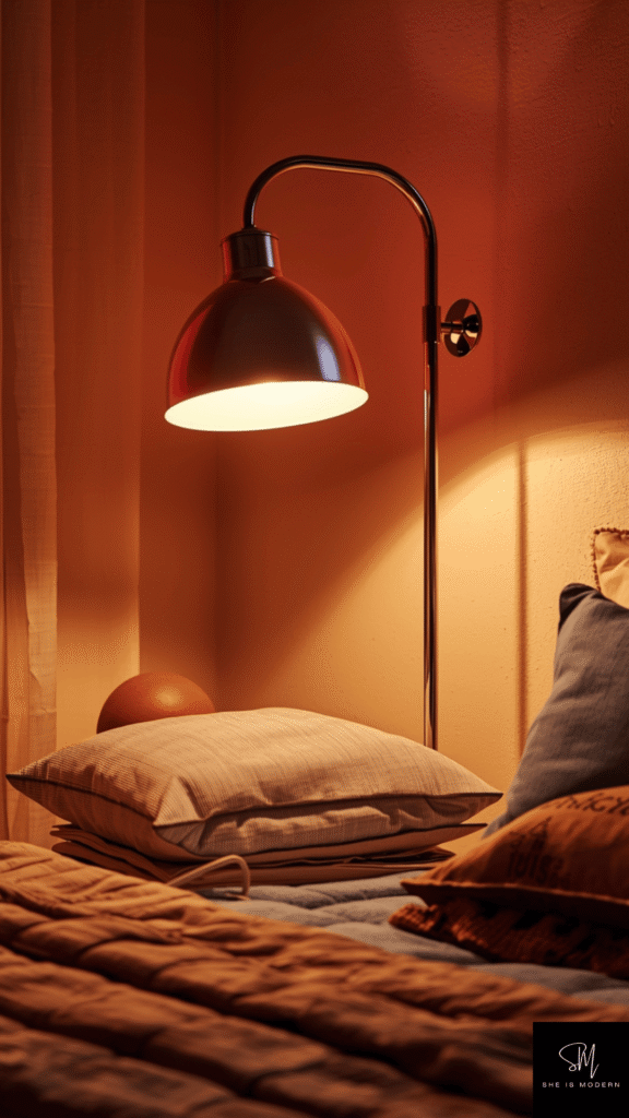 Place a statement lamp on your bedside table or floor. This creates a focal point and adds style. Warm lighting works best for a cozy retro feel. Avoid very bright white lights as they can feel too modern.