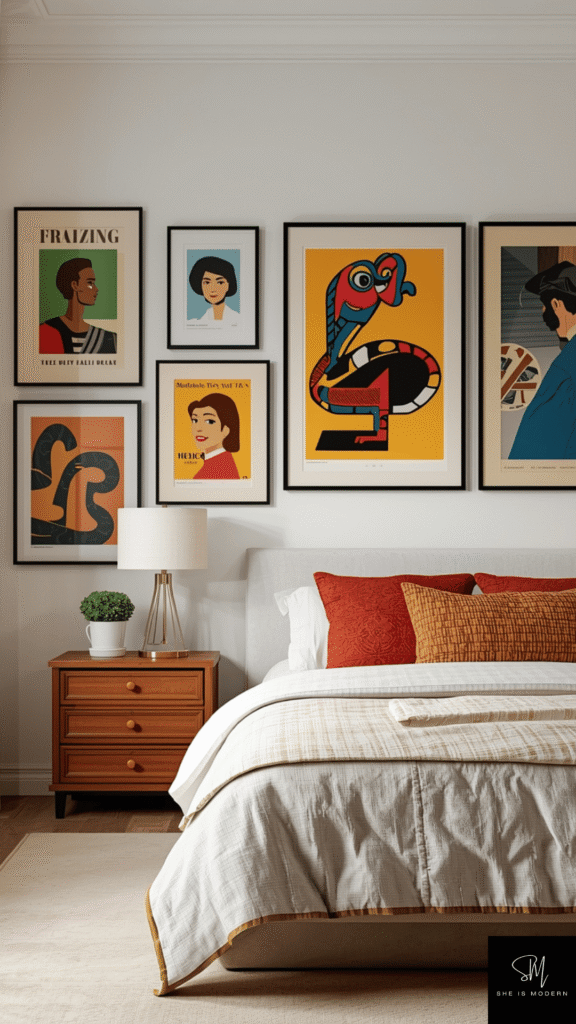 This idea is easy to update anytime. You can change art pieces based on your mood or season. Retro wall art is a simple way to make your bedroom feel creative and full of life.