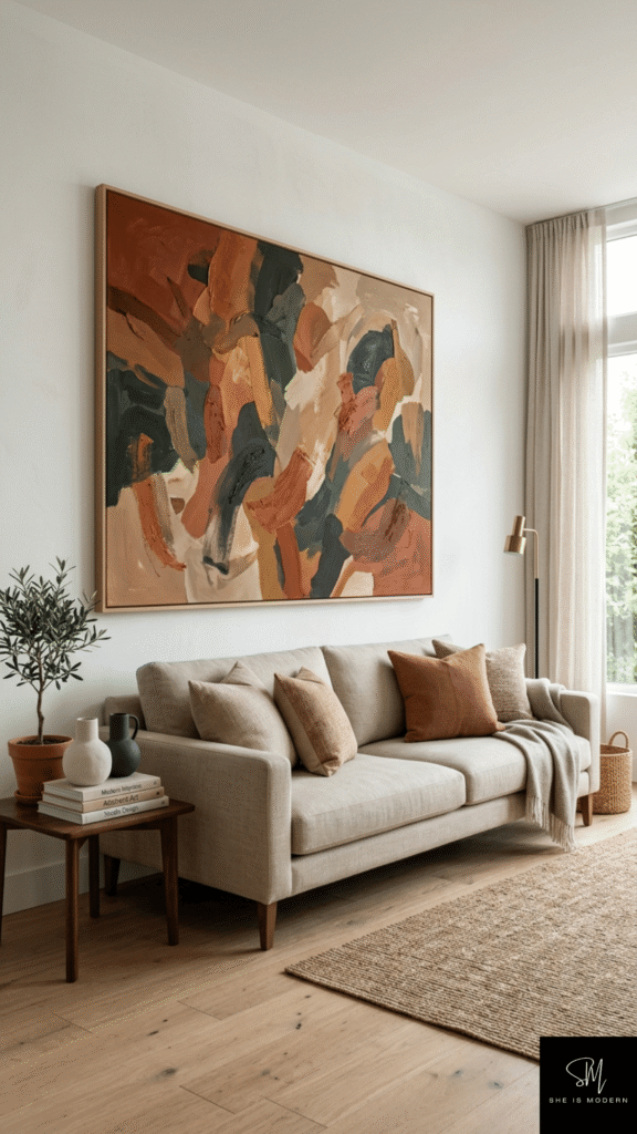Oversized wall art is one of the simplest ways to make a big impact without cluttering your space. A single large artwork can fill empty walls and instantly make your home feel more styled and complete. Whether you choose abstract designs, bold color palettes, or minimalist black and white prints, large art pieces draw the eye and set the tone of the room.