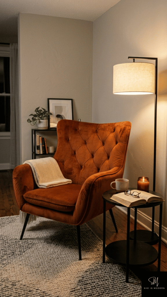 Placement plays a big role in how effective it looks. Place your accent chair in an empty corner, near a window, or beside a sofa to create a cozy and functional spot. Pair it with a small side table or a floor lamp to complete the look. This creates a mini seating area that feels intentional and stylish.