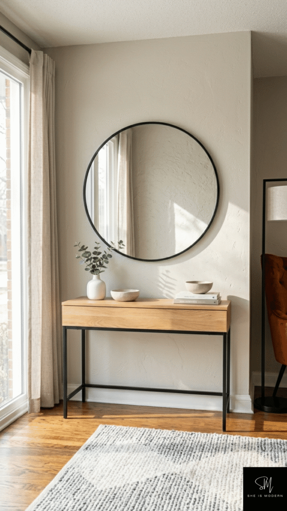 Keep surrounding decor minimal so the mirror stands out. Avoid placing too many items around it, as this can make the area feel busy. A statement mirror is both functional and decorative, making it one of the easiest ways to elevate your home without major changes.