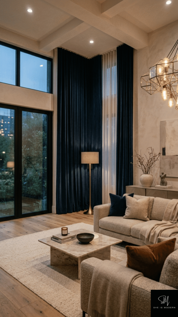 Bold curtains can completely change the mood and style of a room. Choosing rich colors like deep green, navy, or even patterned fabric adds drama and elegance. Curtains frame your windows and can make ceilings look higher when hung correctly, giving your space a more open feel.
