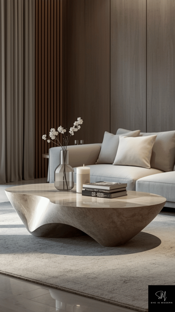 A sculptural coffee table adds a modern and artistic touch to your living room. Unlike basic designs, these tables feature unique shapes, curves, or mixed materials that instantly catch the eye. It becomes a centerpiece that brings character and interest to your space.