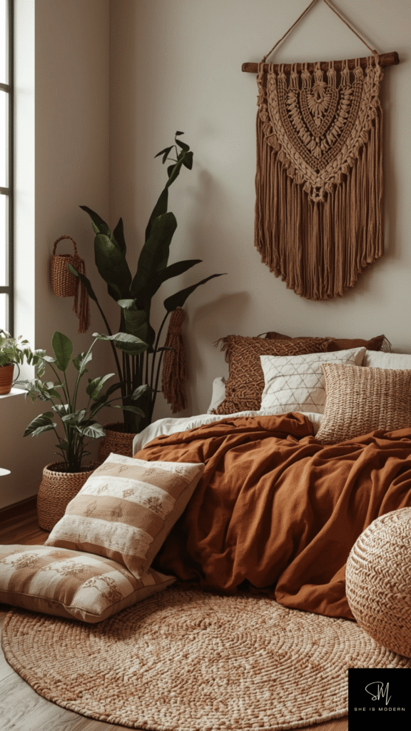A brown boho bedroom style feels relaxed, warm, and full of character. This look mixes different textures, patterns, and natural elements. Brown tones help keep everything grounded while still allowing creative freedom in decor.