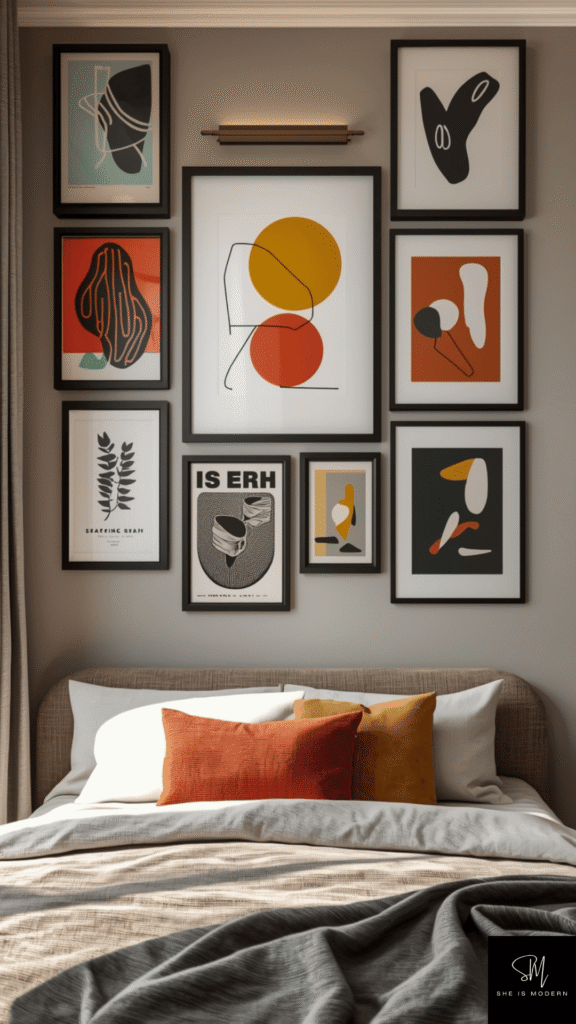 Wall art is an easy way to bring color and style into your bedroom. You can choose paintings, prints, or posters with bright shades and interesting patterns. A gallery wall with different pieces can create a fun and creative look.