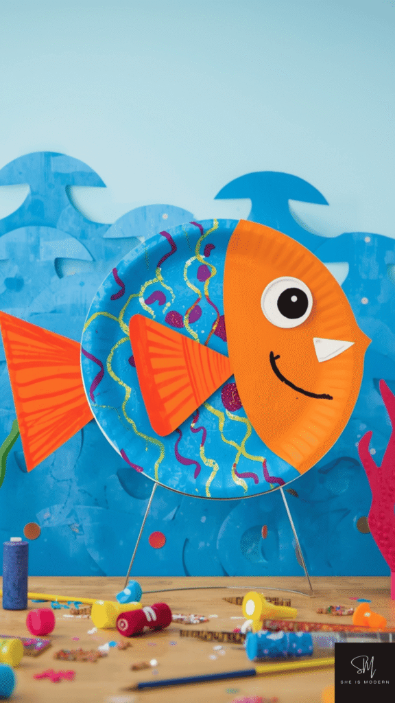 Decorate the fish with scales using markers, stickers, or glitter. Add a big eye for a cartoon look. Kids can mix colors and patterns. It helps them explore design and creativity in a simple way.