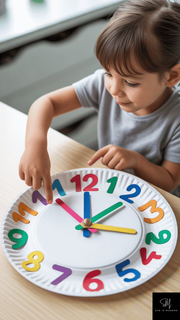 Once completed, kids can hang the clock in their room or use it daily for practice. It becomes both a decoration and a learning tool. This craft is perfect for school activities because it mixes creativity with real life skills. It also keeps kids engaged longer because they can play with it after making it.