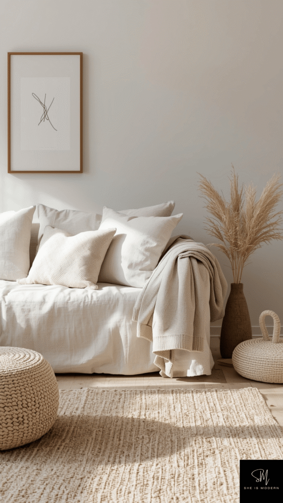 This idea is all about comfort and simplicity. It allows you to keep the space minimal while making it feel inviting. Soft textures make your home feel relaxing and perfect for everyday living without adding clutter.