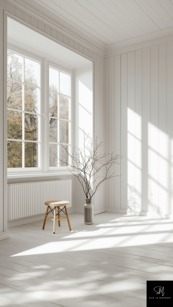 Scandinavian design is all about light. Bright and airy spaces make your home feel open and fresh. Large windows, light walls, and simple decor help reflect natural light and keep the room feeling spacious. Even small rooms can feel bigger with the right use of light.