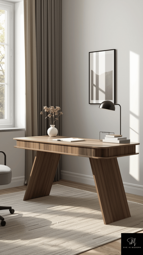 Keep the desk area clean and simple. Add only a few items like a lamp, notebook, or small plant. This helps the desk remain the main focus. Too many items can make the space look messy. Neutral surroundings will highlight the desk design even more.