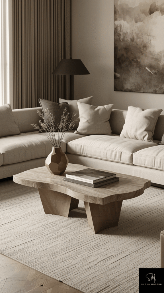 A sculptural coffee table adds an artistic touch to your living room. Instead of a simple design, choose a table with a unique shape or structure. It can be curved, geometric, or made from interesting materials. This type of table works like a piece of art while still being useful. It becomes the center of your seating area.