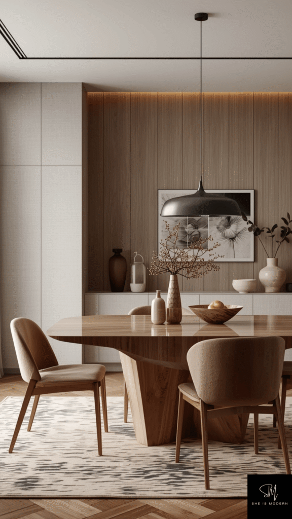 Keep dining chairs simple to highlight the table. Neutral tones help balance the bold design. You can add a simple centerpiece like flowers or a bowl to complete the look. Avoid heavy decoration so the table remains the main focus.