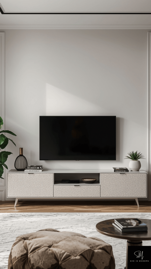 Keep the top of the unit clean and organized. Add only a few items like a plant or a small decor piece. This keeps the focus on the design of the unit. Too many items can make it look messy. Clean lines and simple styling work best.