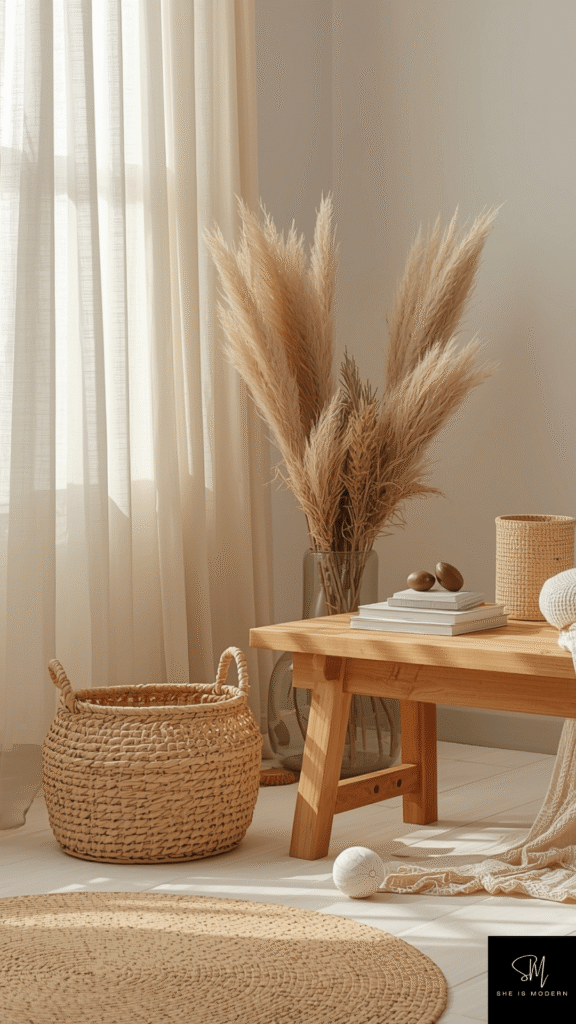 Start by adding one or two natural elements to your space. A wooden coffee table, woven basket, or linen curtains work well. These pieces add texture and depth without needing bold colors. Keep finishes simple and not too glossy. This helps maintain a relaxed and clean look that fits perfectly with transitional style.