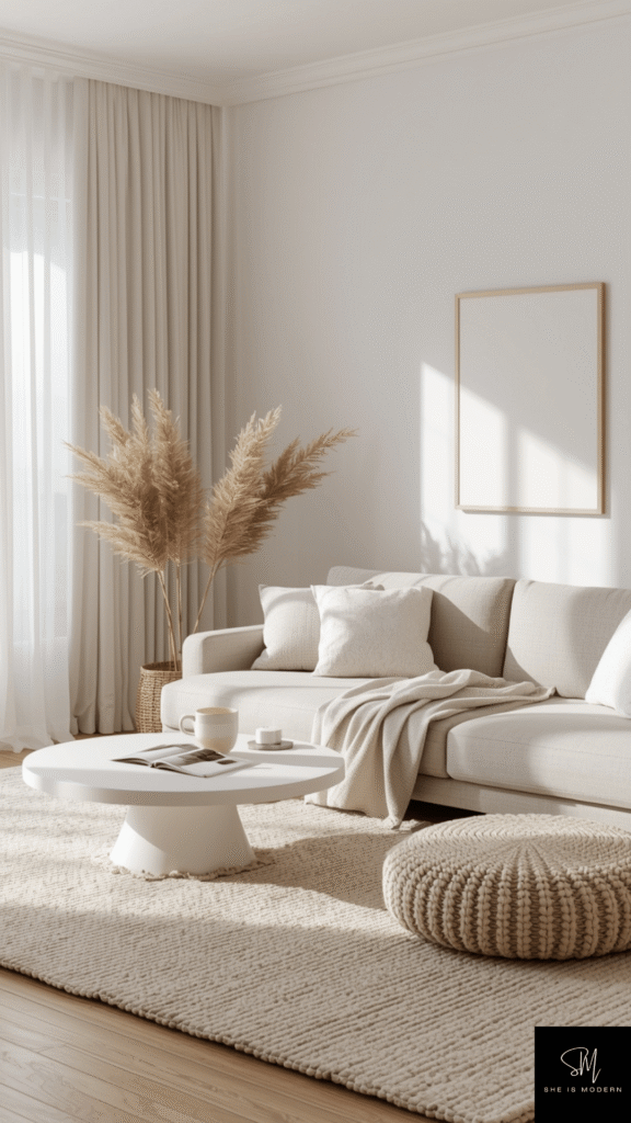 Layering different neutral shades adds depth. For example, combine light beige walls with darker gray furniture. Add soft white cushions or a cream rug. This keeps the room from looking flat. Texture becomes important when using simple colors. Use materials like linen, wool, or wood to add warmth. This makes the space feel cozy and inviting. Even small changes in tone can create a big visual impact. It keeps the design simple but not boring.
