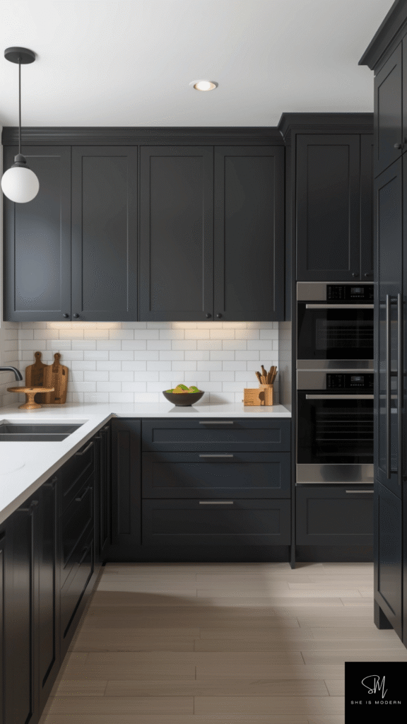 This idea is great for a clean and polished design. It feels modern and sophisticated. Charcoal gray gives your kitchen a strong look without being too overpowering.