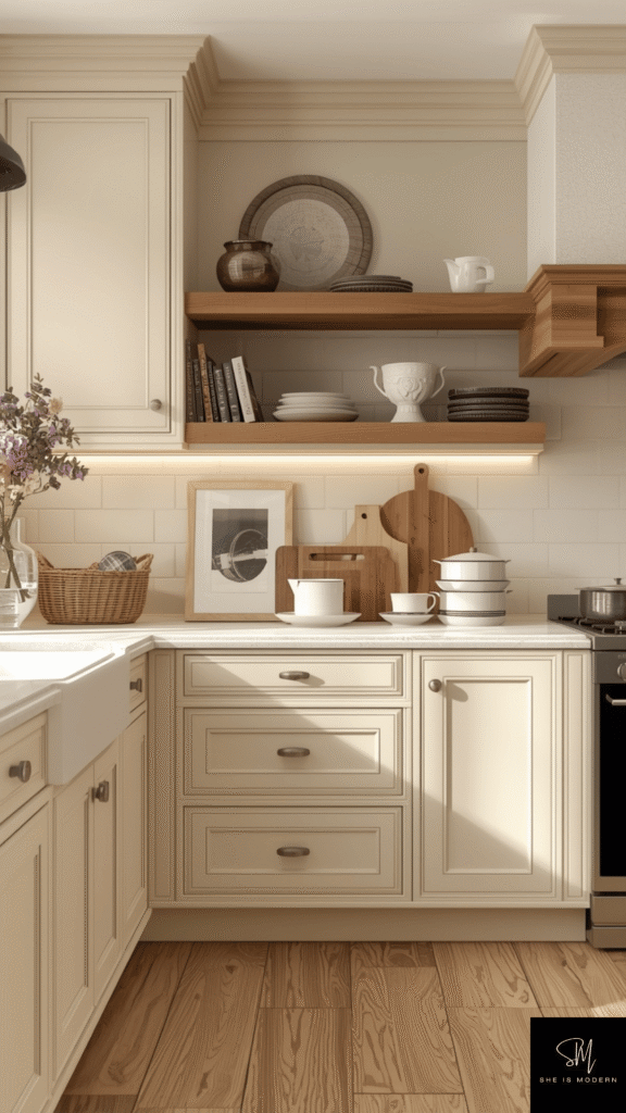 You can pair cream with wood or gold accents for a beautiful finish. Add soft lighting to enhance the warmth. Simple decor and open shelves make the space feel even more welcoming. This color works well in both traditional and modern kitchens.