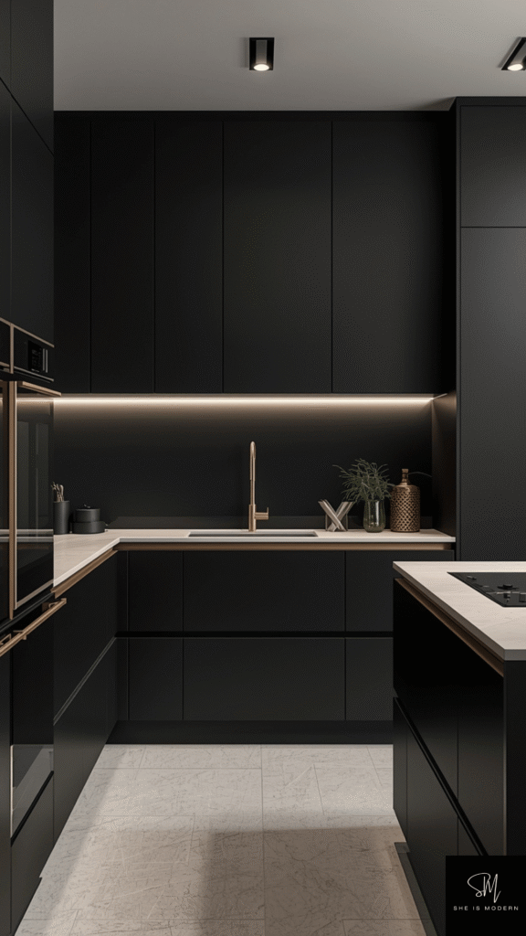 6. Matte Black Kitchen