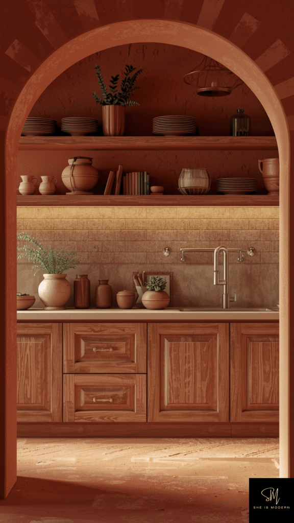 This idea is perfect for a rustic or modern earthy style. It makes your kitchen feel warm and inviting. Terracotta is unique and full of personality, making your space stand out in a beautiful way.