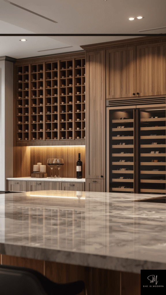 This feature works best when integrated into cabinets or kitchen islands. It makes the space feel custom built and thoughtful. Even a small wine section can elevate the overall design of your kitchen.