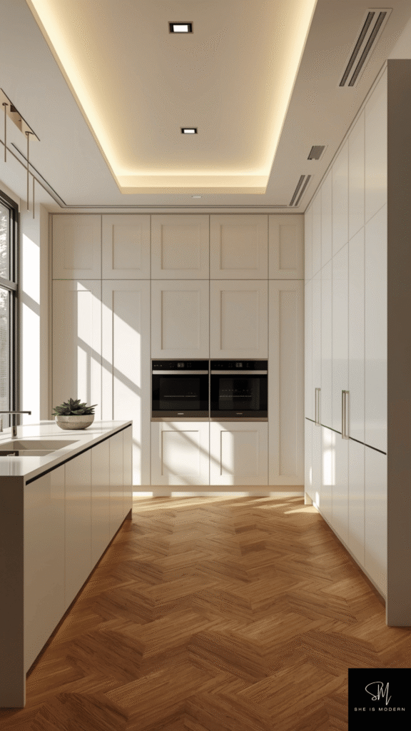 Choose panel ready appliances that match your cabinet design. This keeps everything looking uniform and simple. Without visible appliances, your kitchen feels more like a designed space instead of a functional area only.