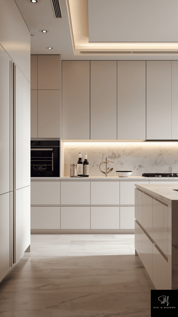 This idea works well in both small and large kitchens. It helps reduce visual noise and makes the space feel calm and organized. Hidden appliances are a great way to achieve a luxury look with a modern touch.