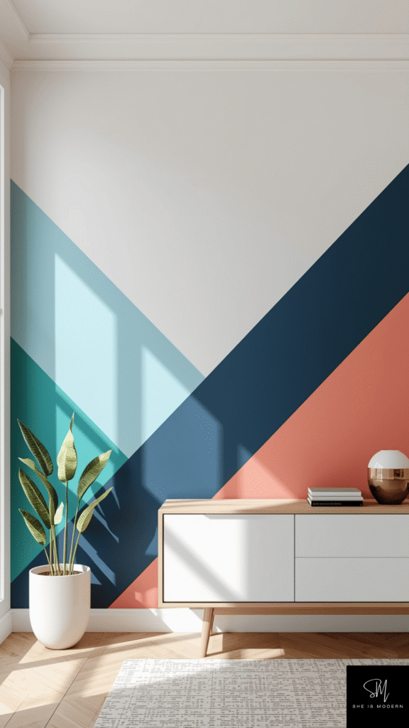 An accent wall can change your room quickly. Use tape to create simple patterns like lines, shapes, or geometric designs. Paint over the tape and remove it to reveal clean lines. This gives a modern and creative look without much effort.