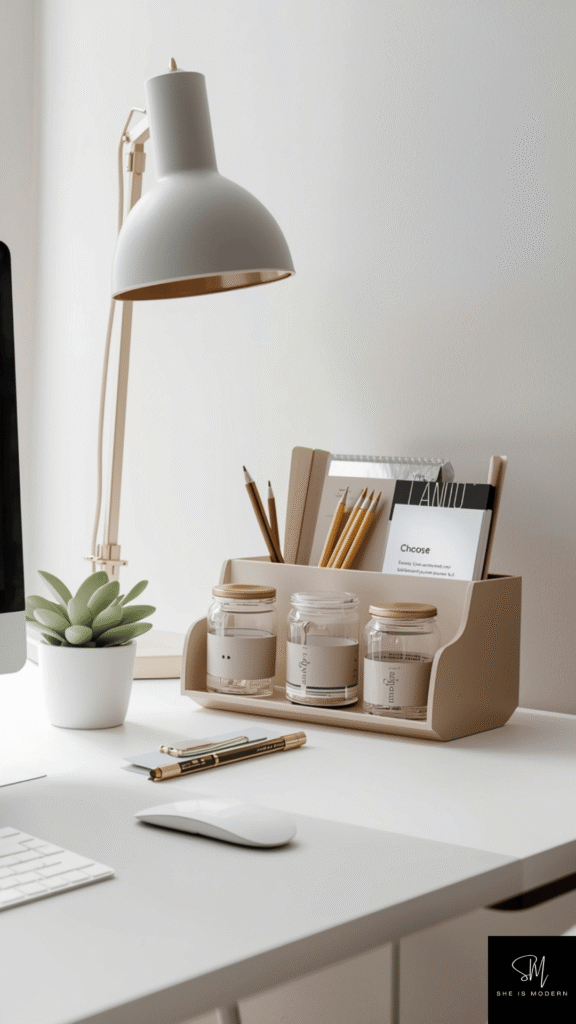 A DIY desk organizer helps keep your space clean and neat. You can use boxes, jars, or recycled containers to store your items. Paint or cover them with paper to match your room decor. This adds style while keeping things organized.