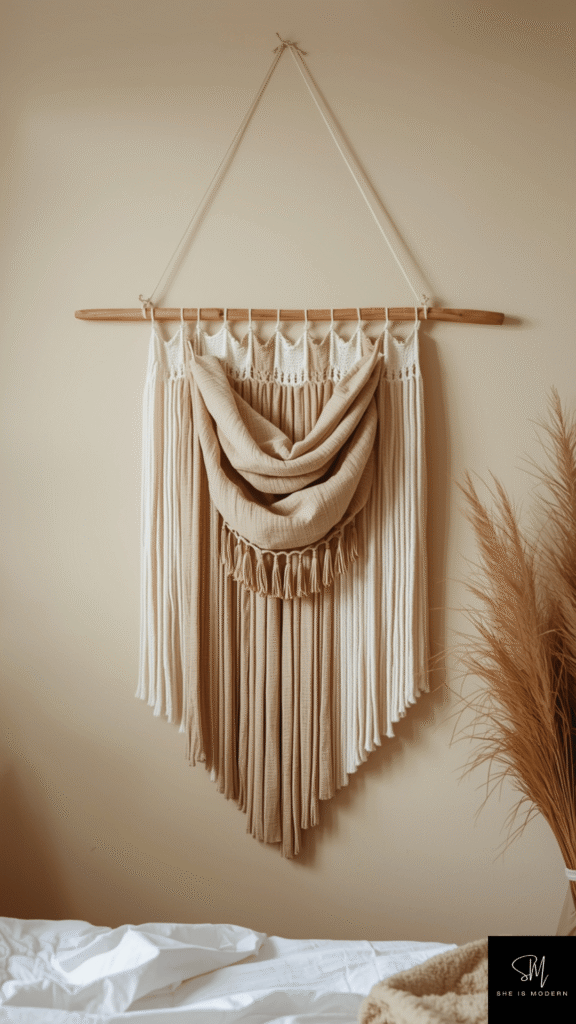 You can layer different fabrics for a more creative look. Add tassels, knots, or simple patterns for extra detail. This gives your wall a cozy and artistic feel. Keep the design simple so it looks clean and balanced.