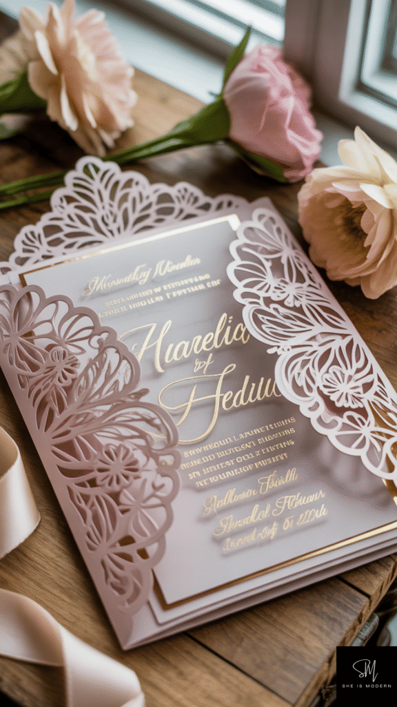 Cricut allows you to add detailed cuts, unique shapes, and even delicate patterns that are hard to find in store bought designs. You can include your names, wedding date, and venue details in fonts that match your style. This level of customization helps create a consistent look across your entire wedding. You can also experiment with vellum overlays, gold foil accents, or embossed textures to make your invitations stand out.