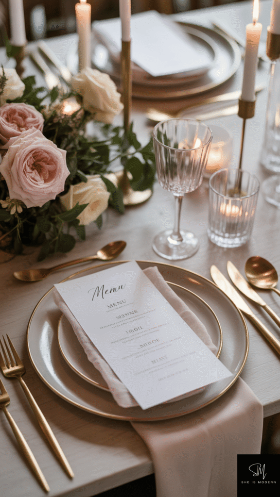 Menu cards help create a more organized and thoughtful dining experience. Guests appreciate knowing what to expect, especially if there are multiple courses. It is a simple Cricut project that adds a refined and polished touch to your reception tables.