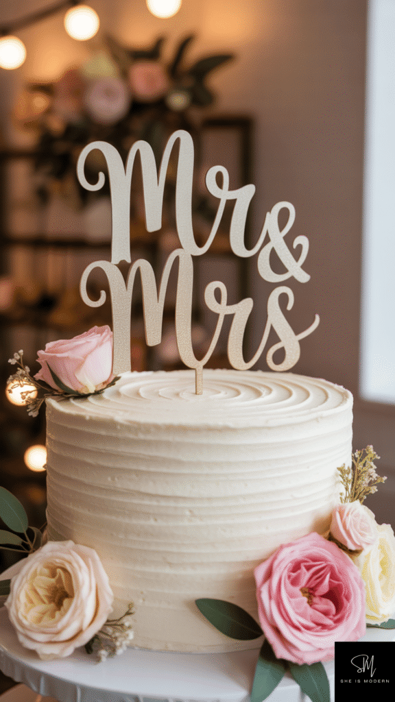 A custom cake topper is a small detail that makes a big difference in your wedding cake presentation. With a Cricut machine, you can create beautiful toppers using acrylic, wood, or glitter cardstock. Popular choices include your names, initials, or simple phrases like “Mr & Mrs.” Choosing a clean and elegant font helps the topper look timeless and match your wedding theme perfectly.
