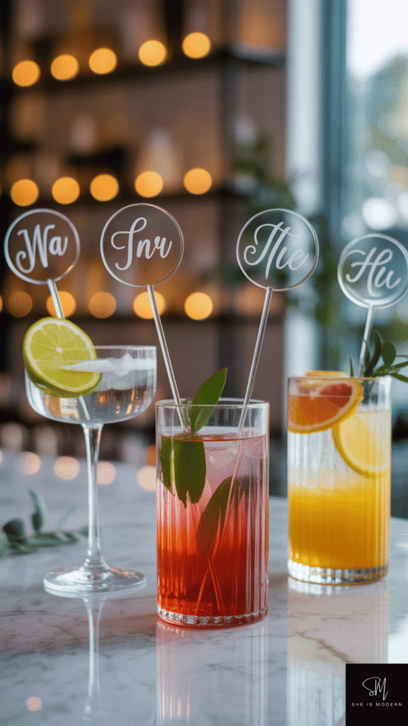 Guests often notice small details like this, and it makes their experience feel more thoughtful and special. You can match the colors of the stir sticks with your overall decor to create a consistent style. Even a simple design can make your drink setup look more elegant and put together.