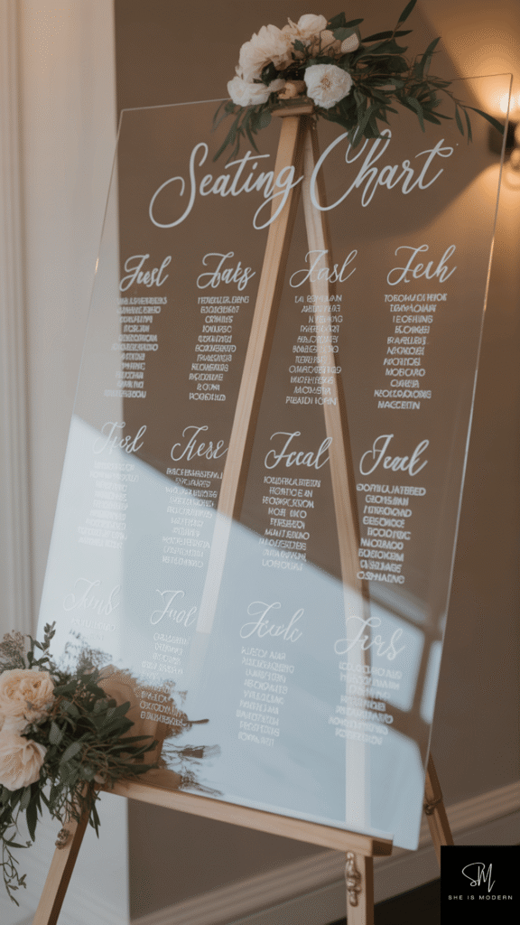 You can organize names in a simple layout and use fonts that match your wedding theme. Adding decorative elements like greenery or floral accents can make the seating chart look more elegant and visually appealing. It becomes both a functional piece and a part of your overall decor.