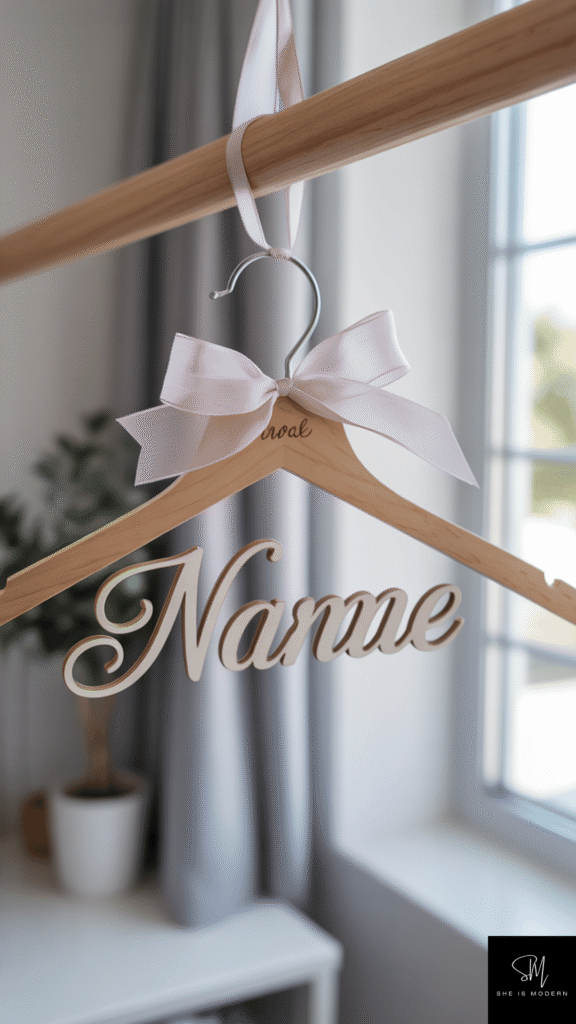 You can use vinyl to apply the design onto a wooden hanger. Soft colors like white, gold, or pastel shades work beautifully for a wedding theme. Adding a ribbon or bow can enhance the overall look without making it feel too heavy or busy. Keeping the design simple helps your dress stand out more in photos.