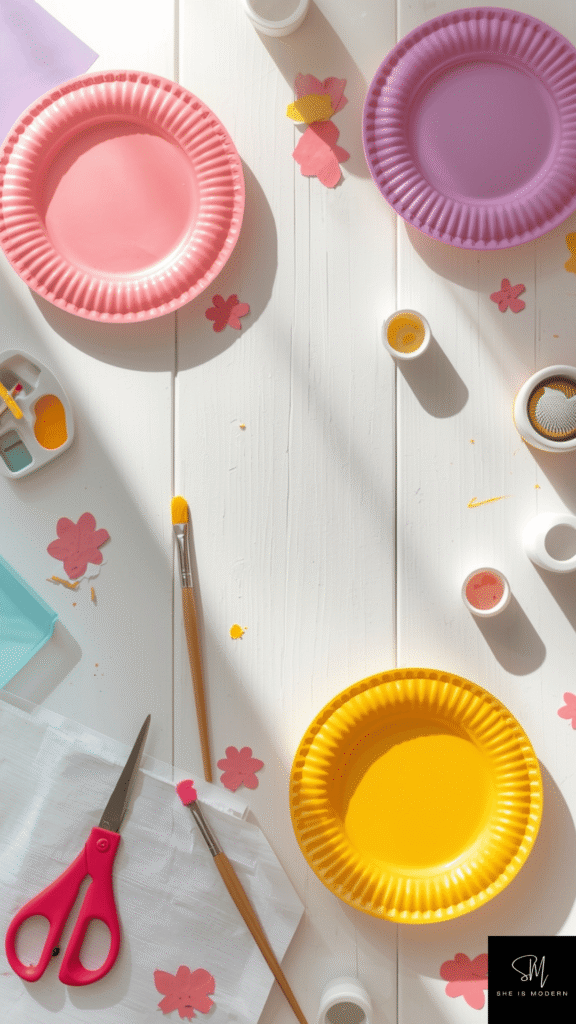 Spring is the perfect time to bring colors into your home, and paper plate flowers are a fun way to start. Kids love this craft because it’s simple and lets them play with bright paints, and if you want more similar ideas, you can explore these cute paper plate crafts for kids. All you need are paper plates, paint, scissors, and glue.