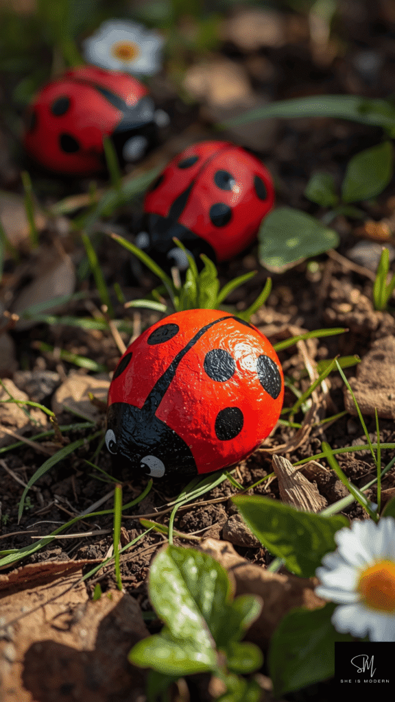 Painted rock ladybugs are simple, creative, and connect kids with nature. Start by collecting smooth, flat rocks from outside or using store bought ones. Wash and dry them before painting. Use red paint for the base, then add black spots and a line down the middle. Finish by adding small white and black dots for the eyes. Kids love turning plain rocks into cute little ladybugs.
