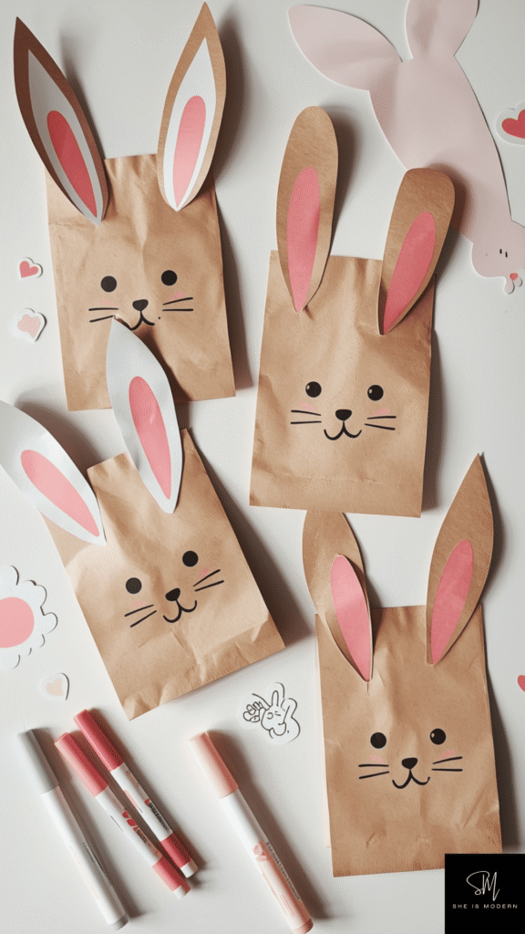 Bunny paper bags are both fun to make and useful for play or gifts. Start with a simple paper bag and decorate it to look like a bunny. Add long paper ears, draw or glue on eyes, and create a nose with markers or paper cutouts. Kids can also add whiskers using string or draw them with a pen. Each bunny can have its own personality.